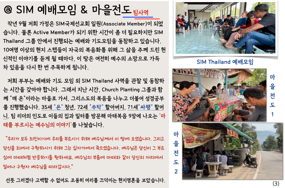 2. 제자 낌짜이와 시작하는 한글교육과 성경공부를 통해 짜이가 예수의 사람 되게 하소서.